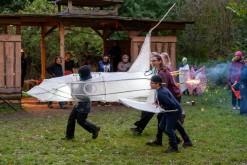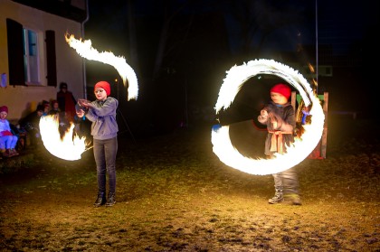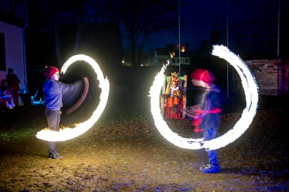 Eine Kooperation zwischen mit Silvana Lehmann ( Feuerkünstlerin und Zirkustrainerin) Feuerreigen und Angelika Mühlbach Theater(t)räume Die Kinder erarbeiten über Improvisationen, eine kleine Geschichte zu den Elementen Feuer und Licht. Sie arbeiten an ihrer Sprache, ihrer Bühnenpräsens, haben Spass am Verkleiden und schlüpfen in die unterschiedlichsten Rollen. In der Woche wird gegenseitiges Vertrauen aufgebaut, Teambildung und Verantwortungsbewusstsein gestärkt und die Leistung jedes Einzelnen gewürdigt. Die Kinder werden mit dem Medium Feuer bekannt gemacht. Sie erfahren geschichtliche Hintergründe, chemische Zusammenhänge und lernen den sicheren Umgang mit dem Feuer. Sie erwerben sich „Rüstzeug“ und die Handhabe, wie man mit Feuer Stimmungen erzeugen kann und es ästhetisch zum Einsatz bringt.